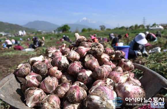 中 리장, 수확한 마늘이 한가득