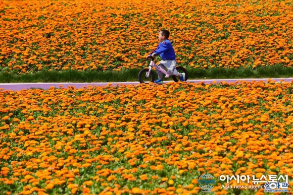 "활짝 핀 꽃을 감상하세요"