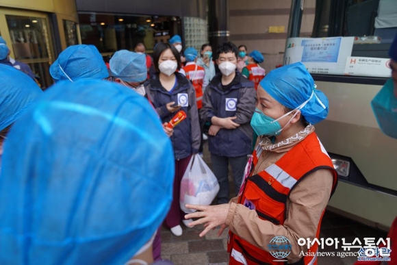 임시진료소 합류하는 후베이 상하이지원의료팀