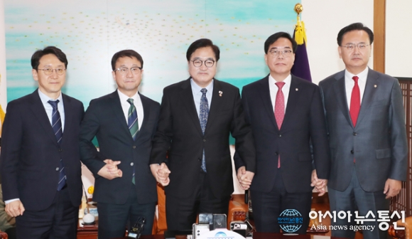 [아통포토] 손 잡은 우원식-한병도-송언석