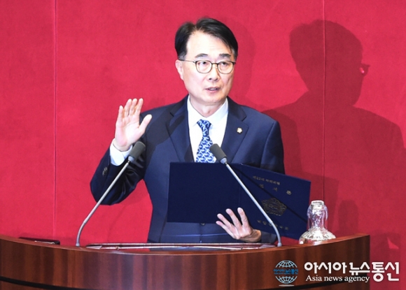 [아통포토] 선서 하는 비례대표직 승계한 김준환 민주당 의원