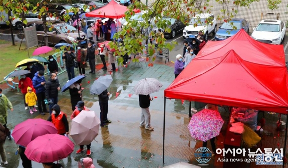 비가 내려도 코로나19 검사는 계속