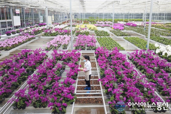 中 간쑤성 스마트 화훼단지에 찾아온 봄