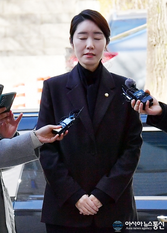 [아통포토] 취재진 길문 눈 감은 무소속 강선우 의원