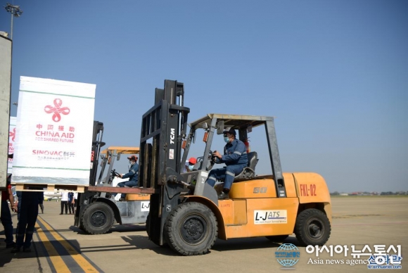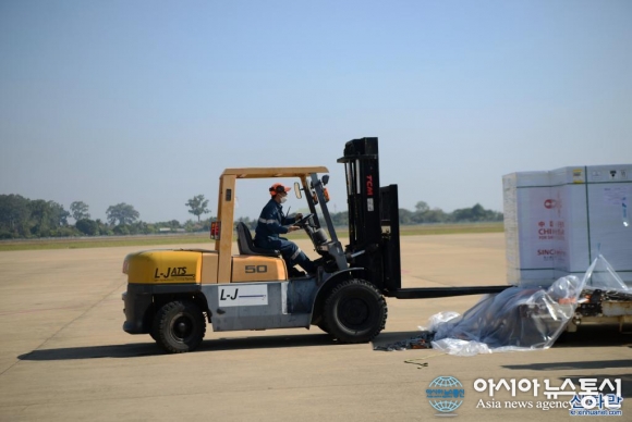중국산 코로나19 백신 추가분 비엔티안 공항 도착