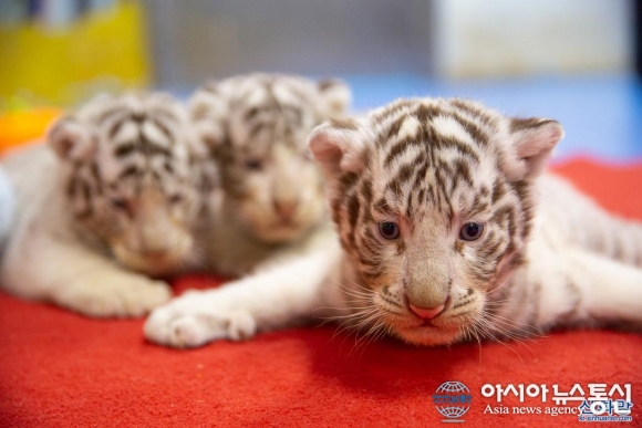 아기 백호 ‘세 자매’ 관람객에 첫선