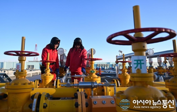 中, 천연가스 설비 점검하는 작업자들