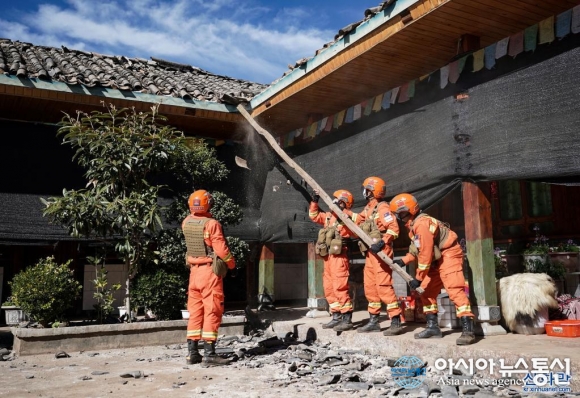 지진피해 복구 작업 중인 中 윈난성 닝랑