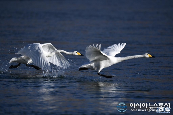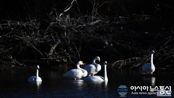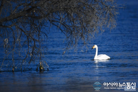 칭하이 황허 습지에 도래한 겨울 진객 백조