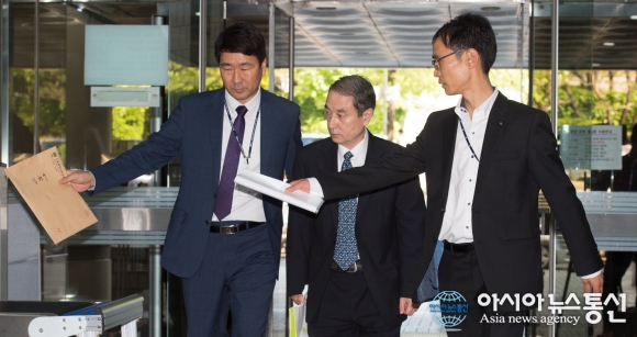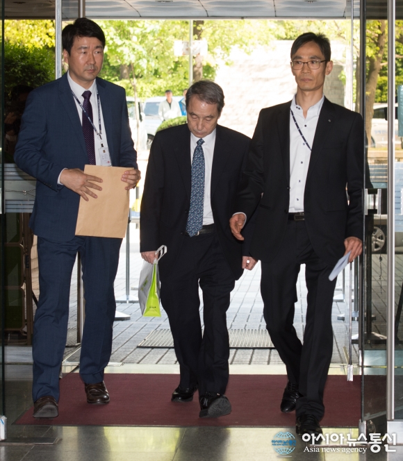 법원에 들어서고 있는 신현우 옥시 전 사장