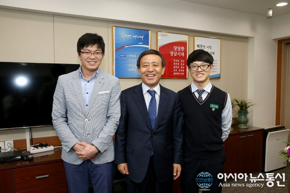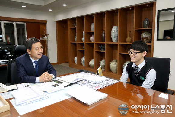 운행 가능한 자동차 제작한 김해 삼문고 김나형군과 환담나누는 허성곤 김..