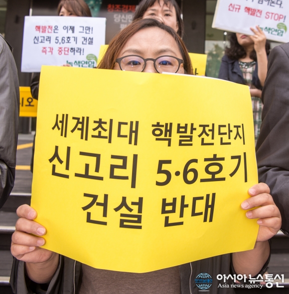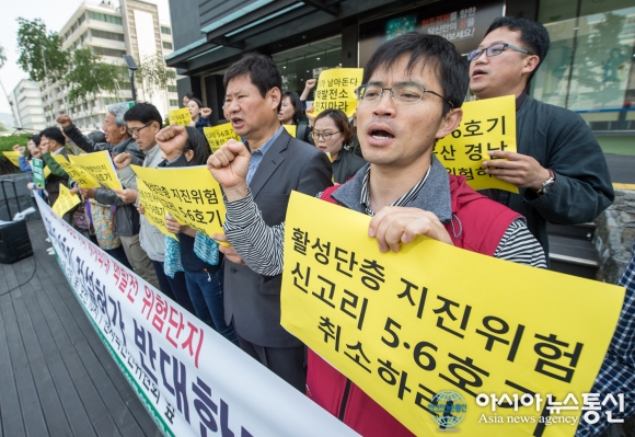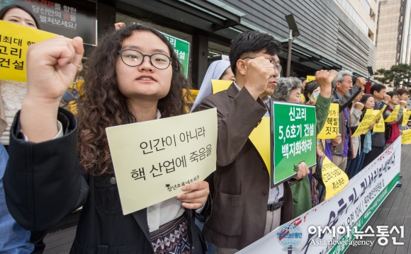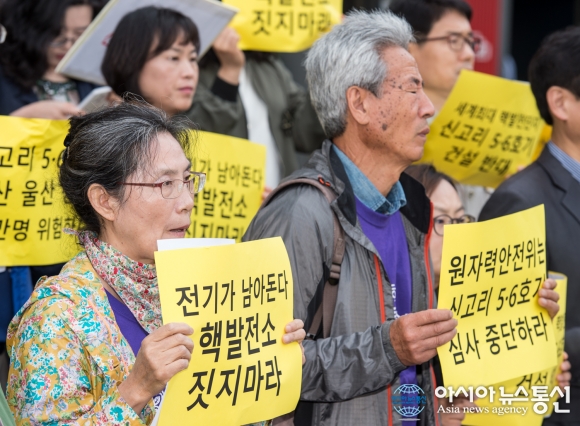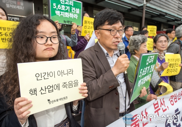신고리 원전 추가 건설 승인 반대하는 기자회견 참가자들