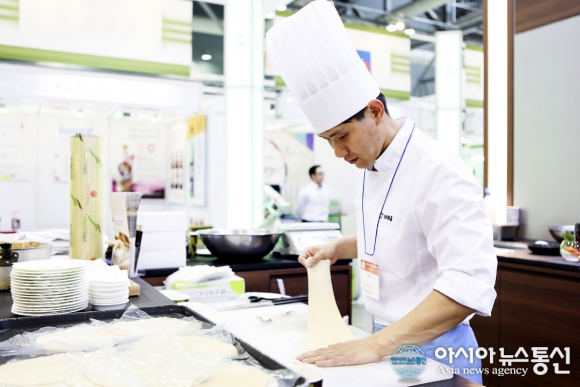 아워홈 오픈키친 코너에서 요리하는 전문 셰프