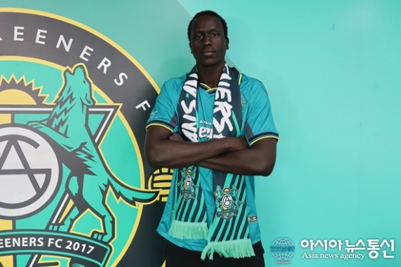 (사진제공=안산 그리너스 FC) [아시아뉴스통신=이상진 기자] 안산그리너스FC(구단주 이민근)가 아르헨티나 월드컵 우승 주역과 함께 미국 무대를 누비고 유럽 대항전 경험까지 갖춘 남수단 국가대표 공격수 마촙(Machop Malual Chol)을 전격 영입했다. 이로써 안산은 2026시즌 외인 구성을 마무리 ... 2026-02-04