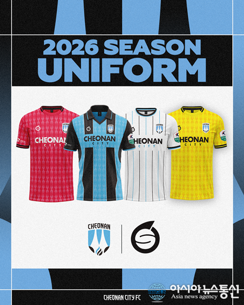 (사진제공=천안시티FC) [아시아뉴스통신=이상진 기자] 천안시민프로축구단(천안시티FC, 이하 천안)이 글로벌 스포츠 브랜드와 함께한 2026시즌 신규 유니폼을 전격 공개하며 승리를 향한 새로운 갑옷을 갖췄다. 천안은 2026시즌부터 세계적인 스포츠 브랜드 ‘선덜랜드 오브 스코틀랜드(... 2026-02-03