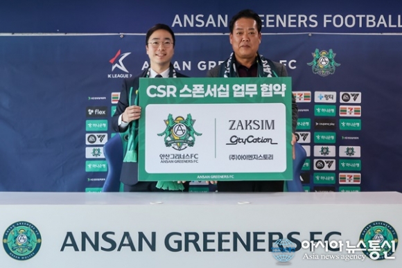 (사진제공=안산 그리너스 FC) [아시아뉴스통신=이상진 기자] 안산그리너스FC(구단주 이민근, 이하 안산)가 2월 2일 주식회사 아이엔지스토리(대표 강남구, 이하 아이엔지스토리)와 CSR 스폰서십 업무협약을 체결했다. 이날 협약식에는 아이엔지스토리 강남구 대표와 안산그리너스FC 김정택 ... 2026-02-04