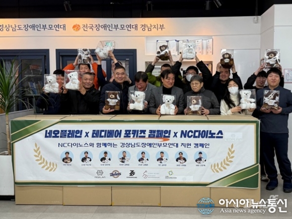(사진제공=NC 다이노스) [아시아뉴스통신=이상진 기자] NC 다이노스가 지난 29일 ‘제로그라운드 x 테디베어포키즈(Teddy Bear for Kids)’ 사회공헌 캠페인을 통해 적립한 292개의 테디베어 인형을 경상남도장애인부모연대에 전달했다. 이번 캠페인은 아이앤지 컴퍼니(대표 이철), 테디베... 2026-02-03