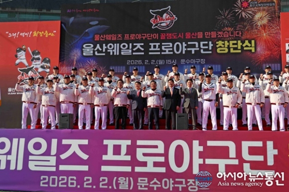 (사진제공=KBO) [아시아뉴스통신=이상진 기자] 울산광역시(시장 김두겸)는 2월 2일 울산 문수야구장에서 '울산 웨일즈' 공식 창단식을 개최했다. KBO와 울산광역시(시장 김두겸)는 지난 해 11월 KBO 퓨처스리그 참가 협약을 체결했다. KBO는 리그 전반의 경쟁력 제고와 저변 확대를 목표... 2026-02-03