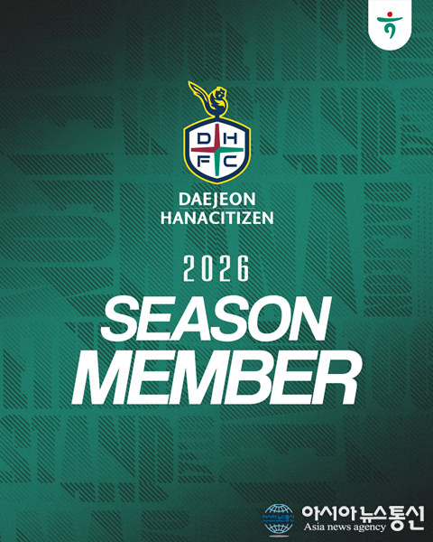 (사진제공=대전하나시티즌) [아시아뉴스통신=이상진 기자] 대전하나시티즌(이하‘대전’)이 2026시즌 신규 시즌권인 ‘시즌멤버’ 판매를 시작한다. '시즌멤버'는 2026시즌 신규 도입된 멤버십 제도이다. 한 번의 구매를 통해 K리그 홈경기 티켓 예매 시 일반 예매보다 2... 2026-02-03