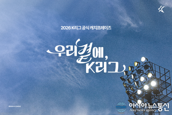 (사진제공=한국프로축구연맹) [아시아뉴스통신=이상진 기자] 한국프로축구연맹(총재 권오갑, 이하 ‘연맹’)이 팬 참여 공모를 통해 선정된 2026시즌 K리그 공식 캐치프레이즈 ‘우리 곁에, K리그’를 발표했다. 이번 캐치프레이즈는 지난해 12월 팬 공모를 통해 접수된 작품 ... 2026-01-29