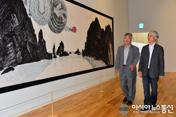지난 ‘실크로드 경주 2015’ 기간, 이문열작가가 솔거미술관을 찾아 박대성 화백과 함께 독도 앞에서를 관람하고 있다.(사진제공=경주엑스포) 경북 경주엑스포는 '실크로드 경주 2015'의 개막과 함께 지난 8월21일 개관한 경주 솔거미술관... 2015-12-22