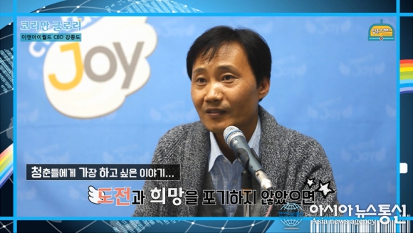 이앤아이월드 강종도 대표 청춘스케치-코리안글로리 출연 장면.(사진제공=제이프로덕션) 국내 최대 eBook개발 전자책 제작 기업 이앤아이월드 CEO 강종도 대표가 CTS라디오-네이버TV캐스트 방송 청춘스케치(제작 제이프로덕션) CEO토크쇼 '김은지의 코... 2015-12-22