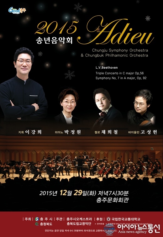오는 29일 충북 충주시문화회관에서 열리는 충주시오케스트라의 송년음악회 포스터.(사진제공=충주시청) 충북 충주시오케스트라가 오는 29일 오후 7시30분 충주문화회관에서 송년음악회를 연다. 충주시오케스트라와 충북도립교향악단의 합동 공연으... 2015-12-21