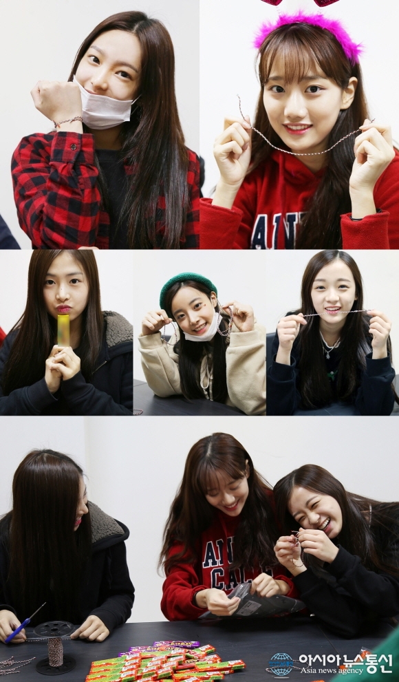 1일 소속사 DSP미디어측은 그룹 에이프릴이 데뷔 100일 기념 깜짝선물을 만드는 사진을 공개하고, 이날 오후4시 V앱을 통해 '깜짝 팬미팅' 현장을 공개한다고 밝혔다. (사진제공=DSP미디어) 신인 걸그룹 에이프릴(채원ㆍ현주ㆍ나은ㆍ예나ㆍ진솔)... 2015-12-01