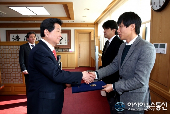 1일 안상수 경남 창원시장이 창원시립합창단과 창원시립무용단의 김주현 지휘자와 노현식 안무자를 선임하고 위촉장을 전달하고 있다.(사진제공=창원시청) 안상수 경남 창원시장의 왕성한 문화예술 행보가 창원시립예술단을 ‘안정적인 정상화 ... 2015-12-01