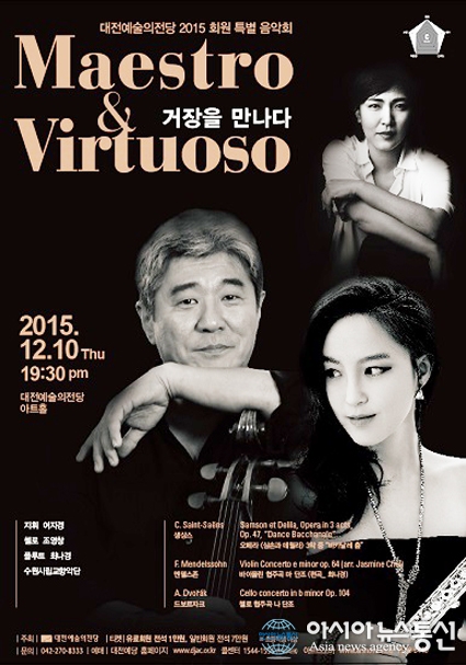 대전예술의전당 회원특별음악회 ‘거장을 만나다’ 포스터.(사진제공=대전예술의전당) 대전예술의전당(관장 오병권)은 2015년 회원특별음악회 <Maestro & Virtuoso> ‘거장을 만나다’ 공연을 오는 12월 10일 오후 7시 30분 대전예술의전당 ... 2015-11-30