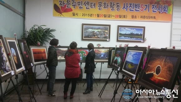 22일 경남 창원시 진해구 자은동이 GS마트 자은점에 주민자치 프로그램 사진반 수강생들이 출품한 사진작품을 전시하고 있다.(사진제공=창원시청) 경남 창원시 진해구 자은동(동장 이선희)은 GS마트 자은점에 주민자치 프로그램 사진반 수강생들이 출... 2015-11-23