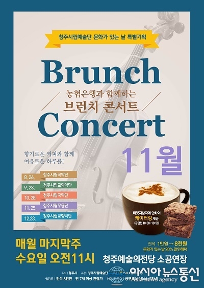 청주시립무용단 브런치콘서트 ‘아침! 춤으로 여는 행복’ 포스터.(사진제공=청주시청) 충북 청주시가 문화가 있는 날 특별기획공연 브런치콘서트 ‘아침! 춤으로 여는 행복’을 오는 25일 오전 11시 청주예술의전당 소공연장에서 펼친다. ... 2015-11-21