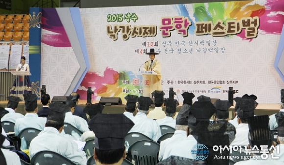 18일 이정백 경북 상주시장이 상주시실내체육관(신관)에서 열린 낙강시제(洛江詩祭) 문학페스티벌 개막식에서 환영사를 하고 있다./아시아뉴스통신=김철희 기자 경북 상주시와 재단법인 세계유교문화재단(이사장 황재천)이 공동 주최하는 '2015 상... 2015-11-18