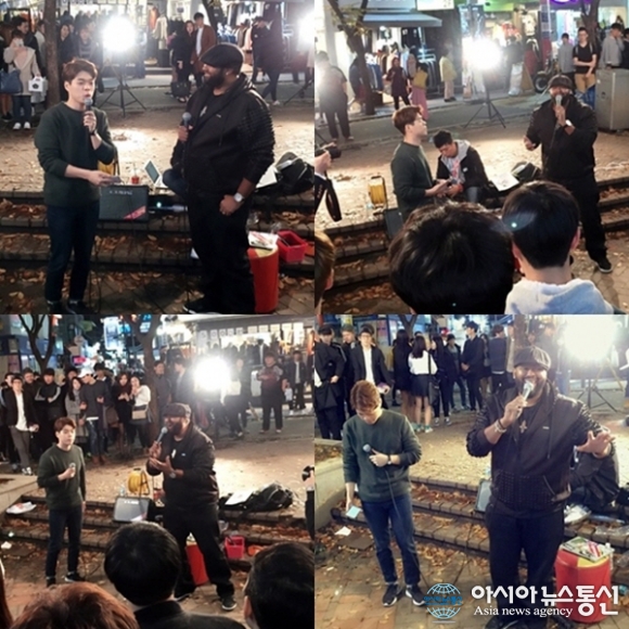 가수 '임세준' '제이미존스' 버스킹 현장. (사진제공=더바이브엔터테인먼트) 가수 임세준과 올포원의 멤버 제이미 존스가 홍대에서 깜짝 버스킹을 펼쳤다. 지난 15일 오후 7시 가수 임세준과 올포원의 멤버 제이미 존스가 홍대에 깜짝 ... 2015-11-16
