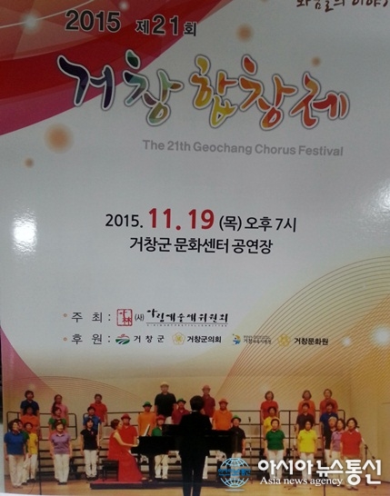 '제21회 거창합창제’ 포스터.(사진제공=거창군청) ‘제21회 거창합창제’가 오는 19일 오후 7시 경남 거창군 문화센터 공연장에서 열린다. 거창합창제는 (사)아림예술제위원회(위원장 이수원) 주최로, 지난 1995년부터 해마다 11월이면 음... 2015-11-16