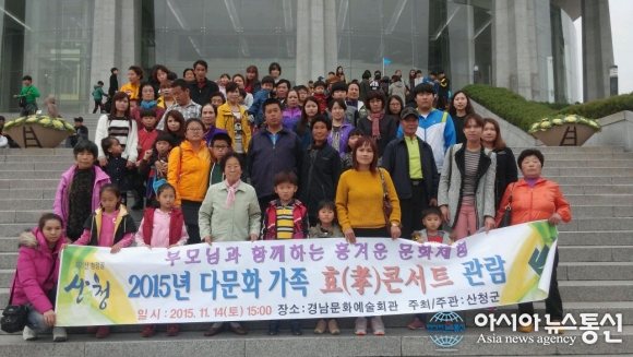 14일 경남 산청군이 다문화 가족과 함께 경남문화예술회관에서 열린 ‘최현우 매직콘서트’를 관람하며 기념촬영 모습.(사진제공=산청군청) 경남 산청군은 14일 오후 3시 다문화 가족 17세대 71명과 함께 경남문화예술회관에서 열린 ‘최현우 ... 2015-11-15