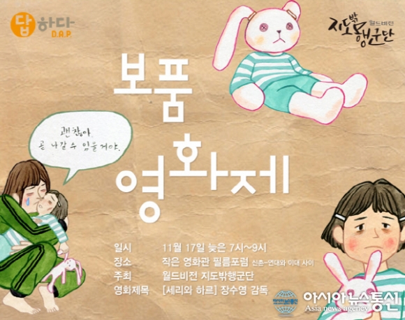 '보품영화제' 포스터 (사진제공=월드비전) 국제구호개발 NGO 월드비전은 공익법센터 어필과 함께하는 이주아동 구금 근절 캠페인 ‘답하다(DAP: Detention Alternative Protection)’의 일환으로 17일 신촌 필름포럼에서 ‘보품영화제’를 개최... 2015-11-16