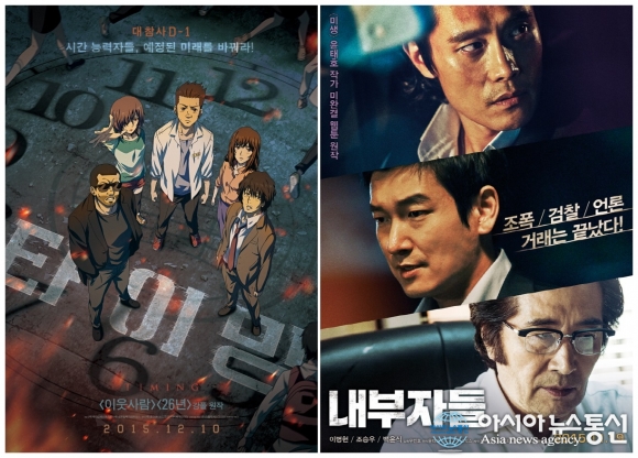 영화 '타이밍', '내부자들' 포스터 (사진제공=스톰픽쳐스코리아) 스크린과 브라운관에서 원작을 웹툰으로 한 작품들이 화제를 모으고 있다. 오는 12월 개봉을 앞둔 영화 ‘타이밍’을 비롯해 ‘내부자들’, JTBC드라마 &lsqu... 2015-11-11