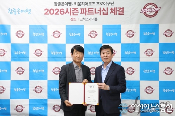 (사진제공=키움 히어로즈) [아시아뉴스통신=이상진 기자] 키움히어로즈(대표이사 위재민)가 종합여행사 ‘참좋은여행’과 2026시즌 파트너십 계약을 체결했다. 이번 파트너십 체결에 따라 키움은 2026시즌 동안 유니폼 오른쪽 어깨에 참좋은여행 광고 패치를 부착하고 외야 펜스에... 2026-04-10
