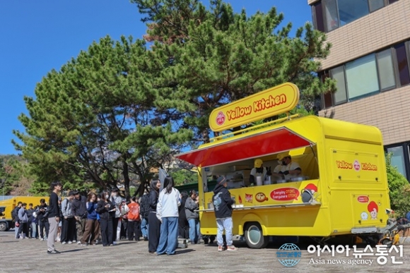 (사진제공=울산 HD FC) [아시아뉴스통신=이상진 기자] 울산 HD가 오뚜기와 함께 대학가를 찾아 봄학기를 보내고 있는 대학생들에게 응원을 전했다. 울산은 7일 울산대학교에서 오뚜기의 ‘옐로키친’ 푸드트럭이 캠퍼스를 찾아 학생들에게 간식을 전달하는 ‘캠퍼스 대항전 간식... 2026-04-09
