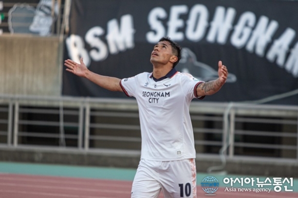 (사진제공=성남FC) [아시아뉴스통신=이상진 기자] 성남FC의 새로운 해결사 빌레로가 복귀전에서의 활약을 인정받아 팬들이 뽑은 경기 최우수 선수에 이름을 올렸다. 성남FC는 지난 4일 화성종합경기타운에서 열린 ‘하나은행 K리그2 2026’ 6라운드 화성FC와의 원정 경기에서 데뷔골을... 2026-04-09