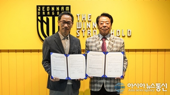 (사진제공=전남 드래곤즈) [아시아뉴스통신=이상진 기자] 전남드래곤즈가 지역 청년 인재들의 취업 지원에 앞장서고 있는 (사)광양만권인력양성사업단(대표 서성기)과 2026년 업무협약을 체결했다. 양 기관은 지난해 첫 협약을 체결한 이후 파트너십을 이어오며 지역 인재 양성과 취업 활... 2026-04-10