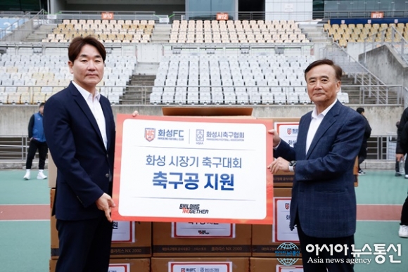 (사진제공=화성FC) [아시아뉴스통신=이상진 기자] 화성FC는 제18회 화성특례시장기 생활체육 축구대회를 맞이하여 화성종합경기타운에서 지역 축구인 응원과 대회 활성화 지원을 위해 축구공을 기부했다. 이번 기부를 통해 총 40여개 팀에 100개의 축구공이 전달됐으며, 지역 동호인과 생... 2026-04-08