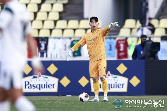 (사진제공=성남FC) [아시아뉴스통신=이상진 기자] 성남FC의 수문장 이광연이 김포FC와의 홈경기에서 눈부신 활약을 펼치며 팬들이 뽑은 최고의 선수로 이름을 올렸다. 성남FC는 지난 3월 28일 성남 탄천종합운동장에서 열린 ‘하나은행 K리그2 2026’ 5라운드 김포FC와의 경기에서 0-0 무... 2026-04-03