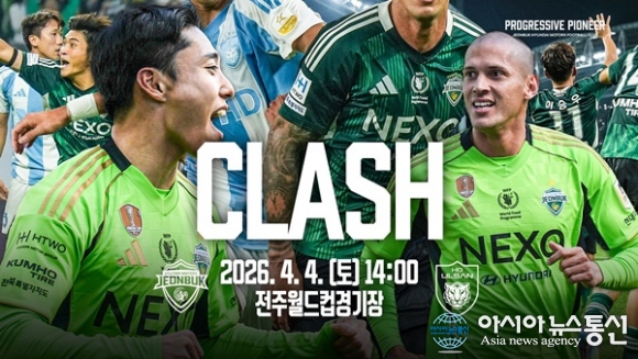 (사진제공=전북현대모터스) [아시아뉴스통신=이상진 기자] 전북현대모터스FC(단장 이도현, 이하 전북현대)가 오는 4월 4일 오후 2시, 전주월드컵경기장에서 울산HD를 상대로 ‘하나은행 K리그1 2026’ 6라운드 홈경기를 치른다. 이번 경기는 양 팀의 리그 통산 100번째 ‘현대가 더비... 2026-04-03