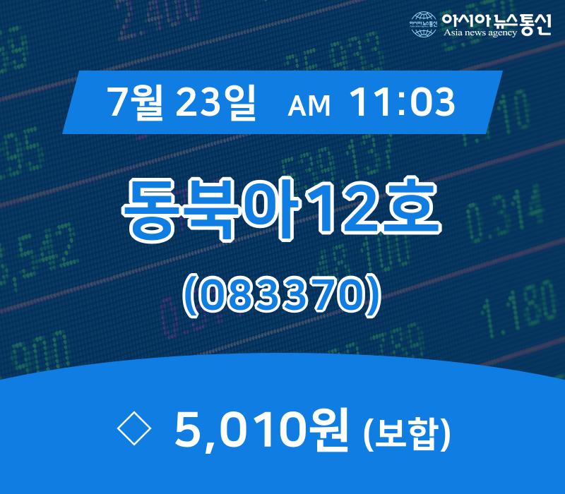 ▲7월 23일 동북아12호 의 주가정보 ▣동북아12호의 거래수량 경향 [현시간] 동북아12호가(083370) 거래량 추세 동북아12호의 시가총액은 79억원, 상장주식수는 1,586천주다. 동북아12호의 등락률은 전일에는 0.00%의 등락률을 보였으나 오늘은 0.00% 변화한 5,010원을 보이고 있다. 동북아12호의 올해 250 최고가는 5,090원이며 250... 2019-07-23