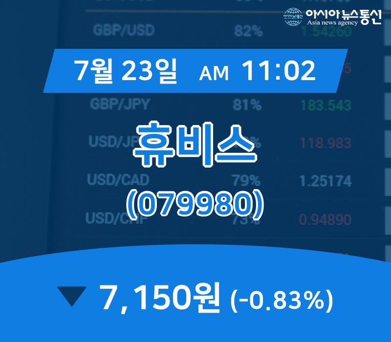 ▲7월 23일 휴비스 의 주가정보 ◎휴비스의 거래량 추세 [현시간] 휴비스가(079980) 거래량 동향 휴비스의 시가총액은 2,467억원, 상장주식수는 34,500천주다. 휴비스의 등락률은 전일에는 1.55%의 등락률을 보였으나 오늘은 -0.83% 변화한 7,150원을 보이고 있다. 휴비스의 올해 250 최고가는 9,970원이며 250최저는 6,600원이다. ... 2019-07-23