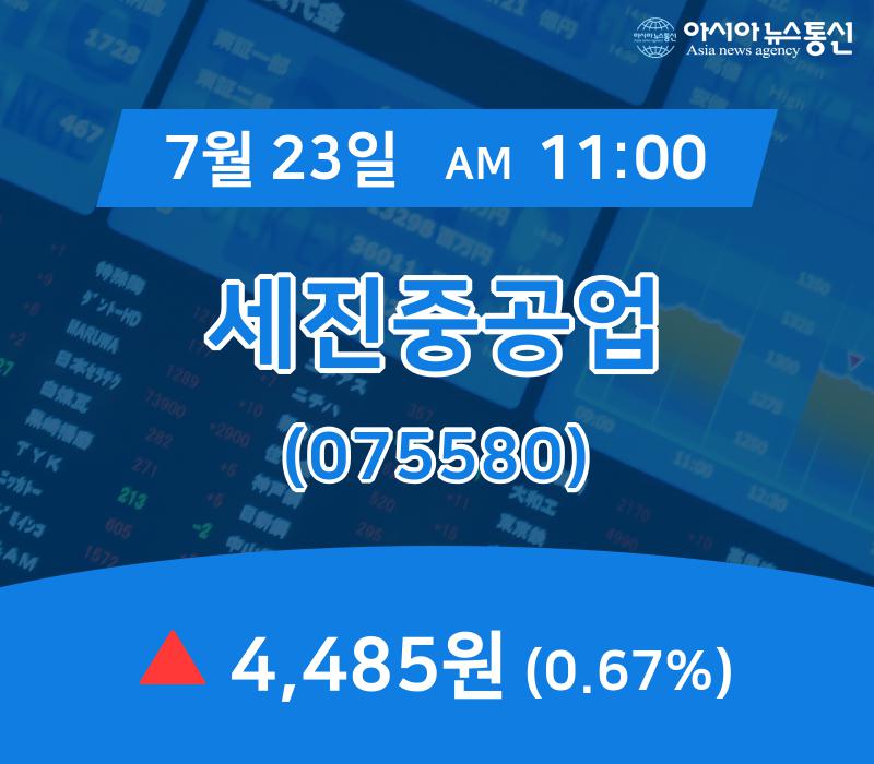 ▲7월 23일 세진중공업 의 주가정보 ▣세진중공업의 거래량 변동추이 [현시간] 세진중공업이(075580) 거래수량 경향 세진중공업의 시가총액 규모는 1,721억원, 상장주식수는 38,373천주다. 세진중공업의 등락률은 전일에는 -1.22%의 등락률을 보였으나 오늘은 0.67% 변화한 4,485원을 보이고 있다. 세진중공업의 올해 250 최고... 2019-07-23