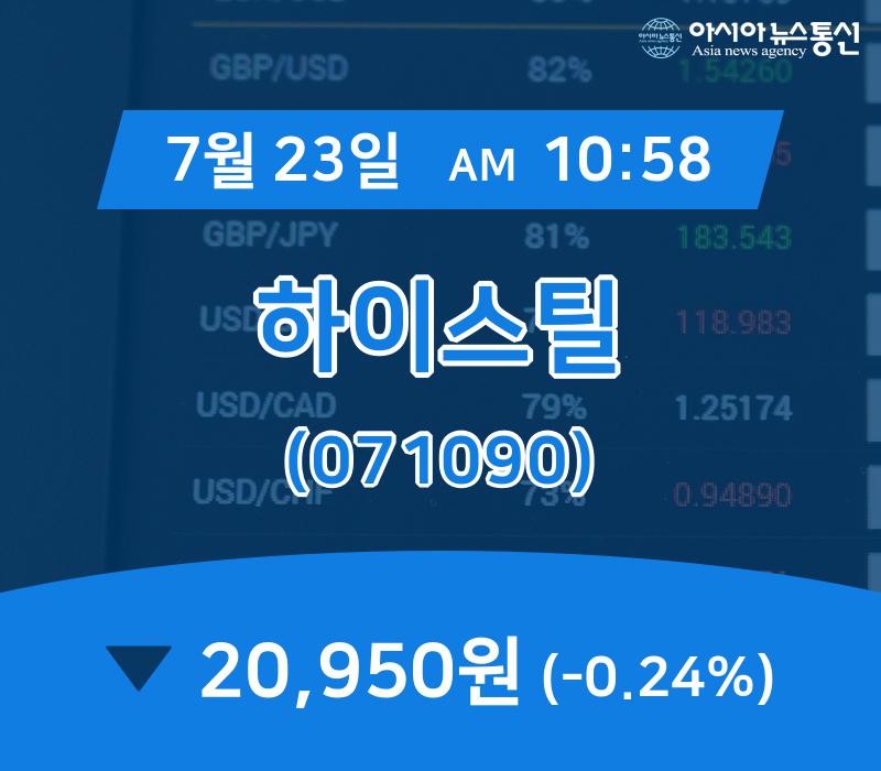 ▲7월 23일 하이스틸 의 주가정보 ▽하이스틸의 거래량 경향 [현시간] 하이스틸이(071090) 거래량 변동추이 하이스틸의 시가총액 규모는 419억원, 상장주식수는 2,000천주다. 하이스틸의 등락률은 전일에는 -2.10%의 등락률을 보였으나 오늘은 -0.24% 변화한 20,950원을 보이고 있다. 하이스틸의 올해 250 최고가는 43,550원이며 ... 2019-07-23