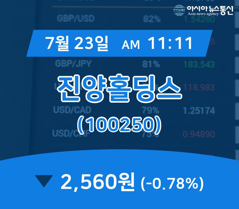 ▲7월 23일 진양홀딩스 의 주가정보 ●진양홀딩스의 거래량 변동추이 [현시간] 진양홀딩스가(100250) 거래량 추이 진양홀딩스의 시가총액은 1,431억원 규모이며 상장주식수는 55,895천주 규모다. 진양홀딩스의 등락률은 전일에는 -0.19%의 등락률을 보였으나 오늘은 -0.78% 변화한 2,560원을 보이고 있다. 진양홀딩스의 올해 2... 2019-07-23